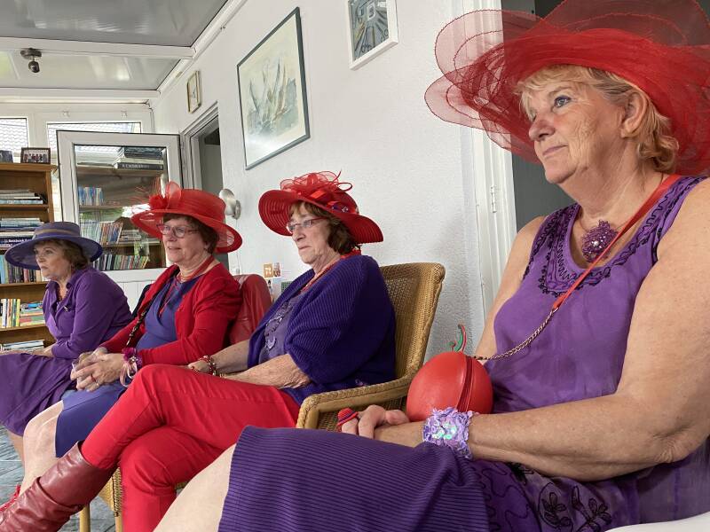 En kijk eens naar haar prachtige paarse hoed!!