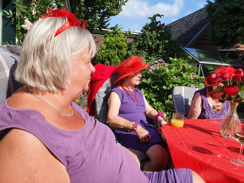 Zij nodigde ons thuis uit voor een drankje en een hapje. De zon scheen volop toen wij arriveerden.