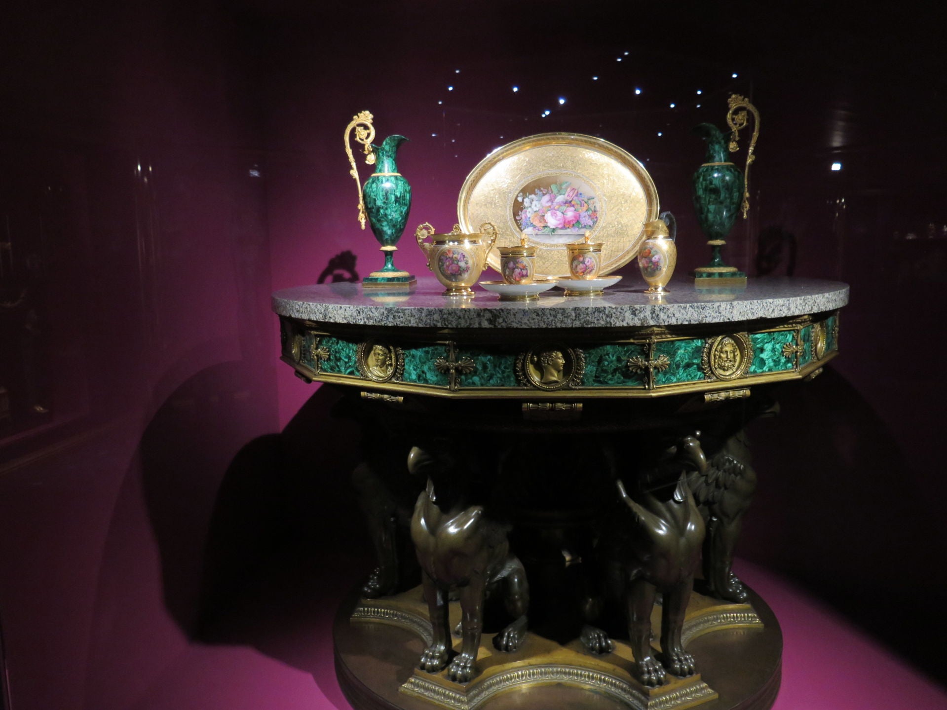 Dit tafeltje is ingelegd met malachiet, deze edelsteen werd veel gebruikt in die tijd.