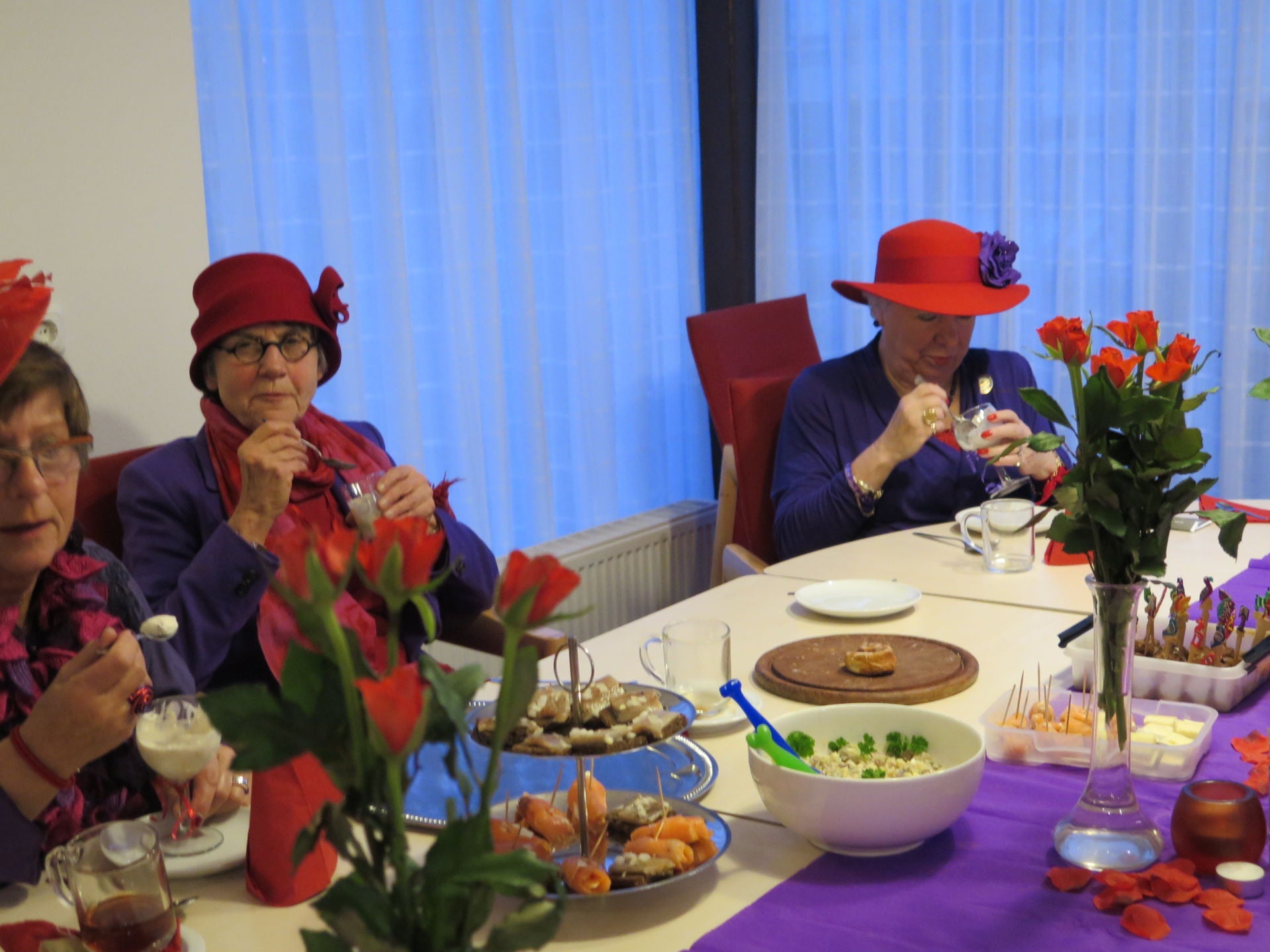 De High tea was deze keer net als vorig jaar bij Freule Helene de la Moutarde. Iedereen had lekkere hapjes meegenomen, het een was nog lekkerder dan het andere!