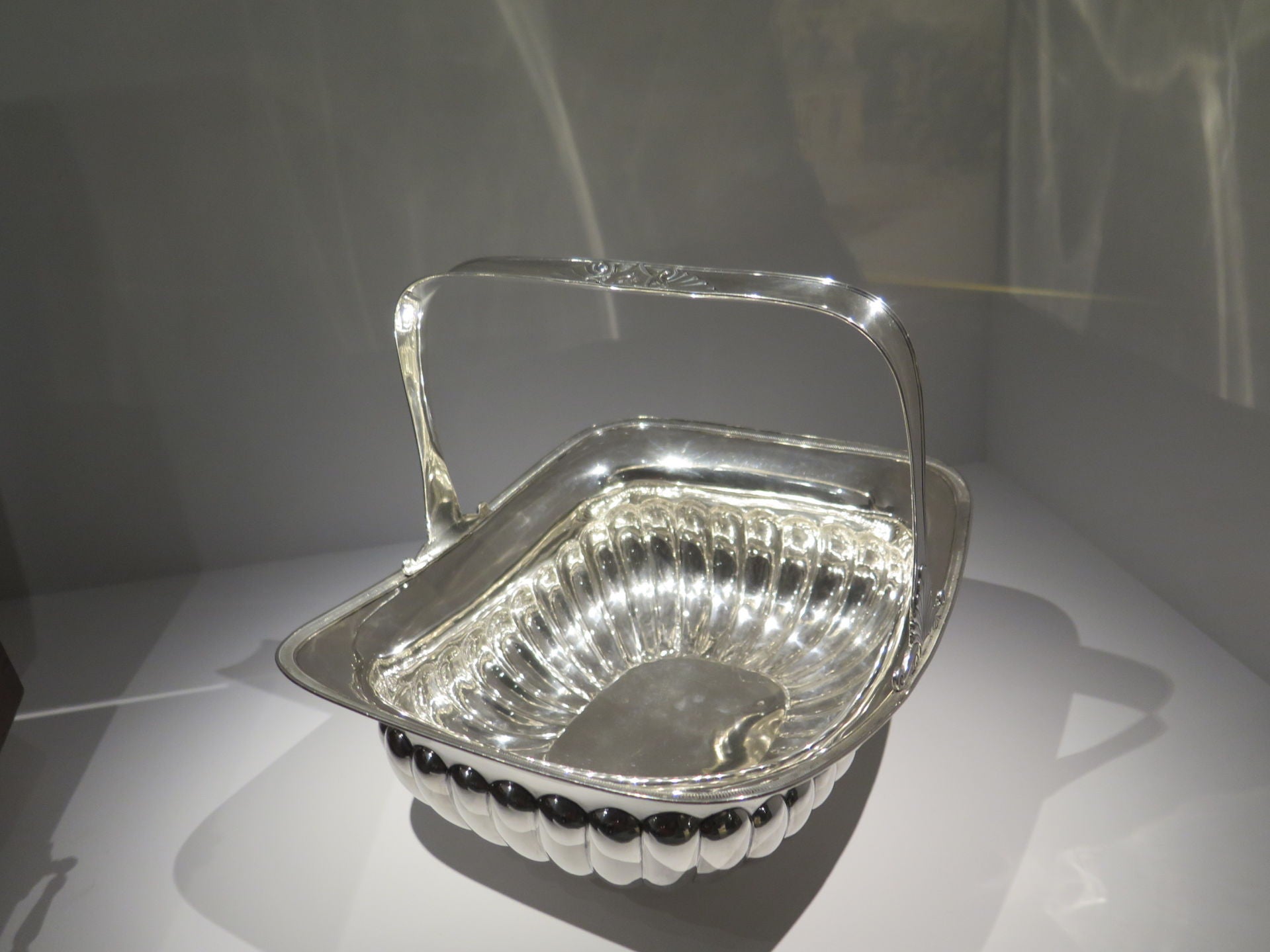 Een prachtige zilveren broodmand, hier willen wij 's-morgens ons beschuitje wel in geserveerd krijgen!