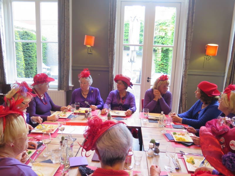 Freule Rompoppe en Baronka hebben ons uitgenodigd voor deze avond. We hebben genoten van een kopje soep en voorjaarsasperges. We hebben de voorbereidingen voor de Hoot getroffen en zo te zien heeft de Queen het er druk mee gehad want ze heeft zelfs tijdens het eten aantekeningen en indelingen van het ontvangstcommite gemaakt.