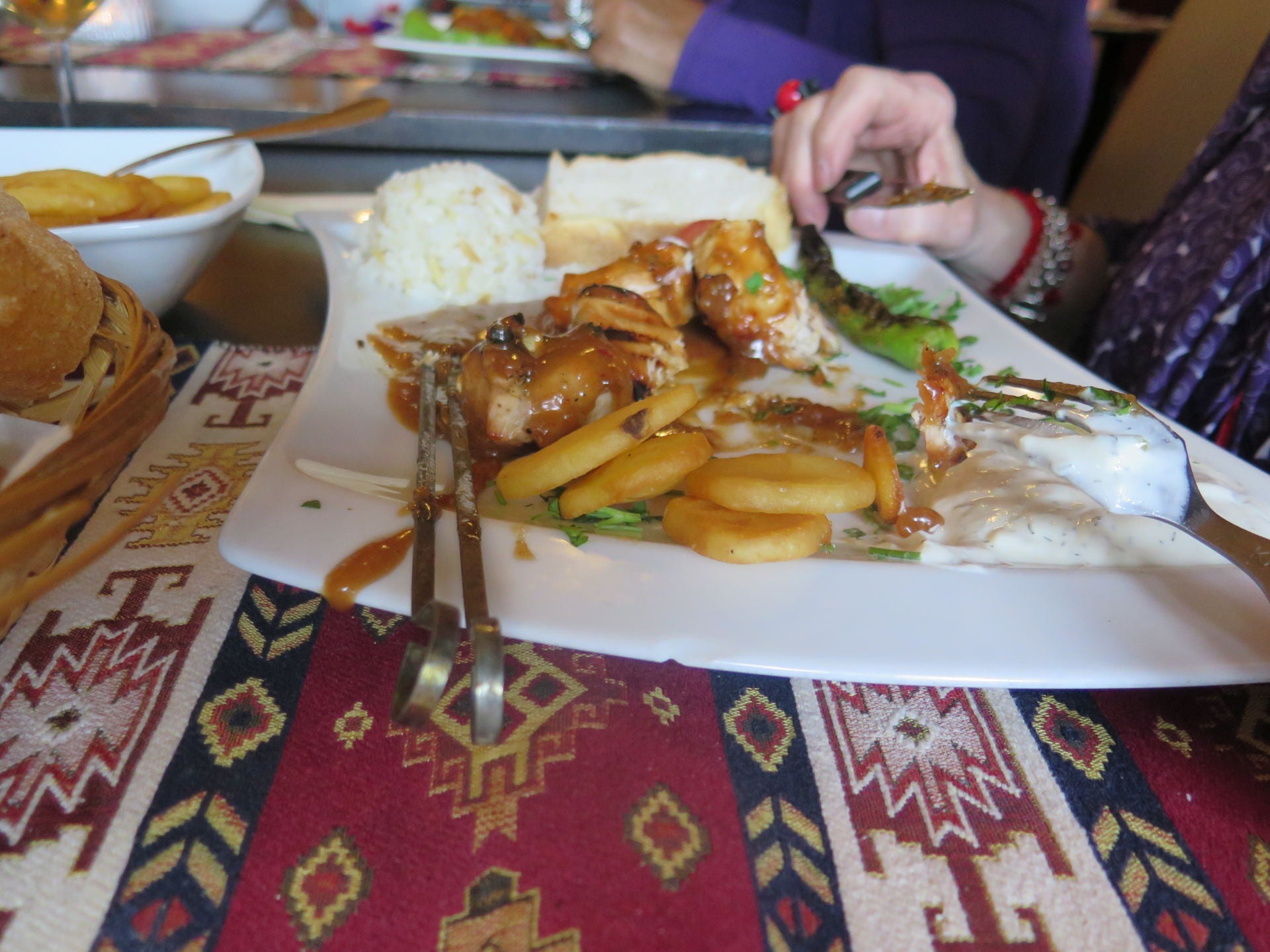 Na een heerlijk glaasje roze champagne vingen we de korte wandeling aan naar het ons al bekende Restaurant Diyar.