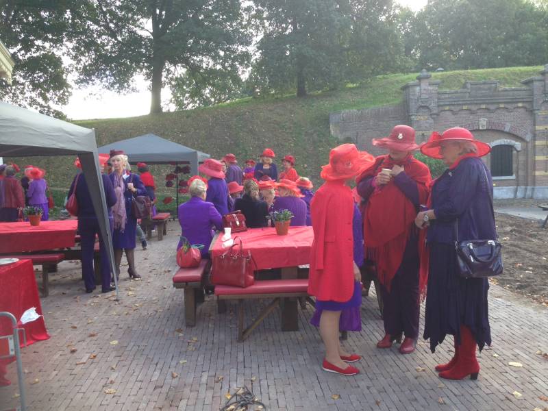 Natuurlijk was er weer een schat aan rode en paarse hoeden.