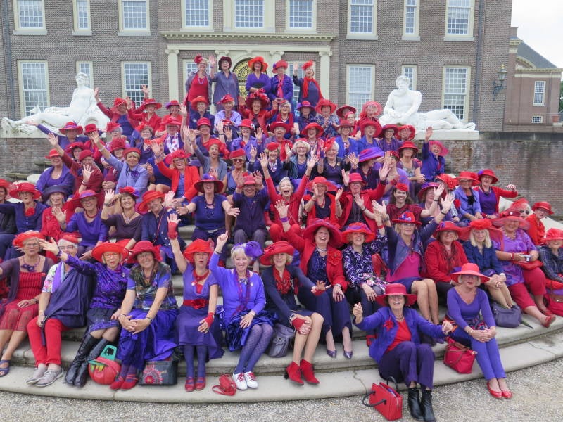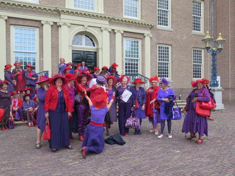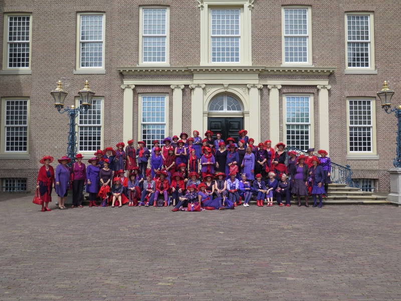 Let op de onderste middelste foto. Deze is met heer. Het witte overhemd is nog te zien. Hij wordt bedolven onder het rood en paars.
