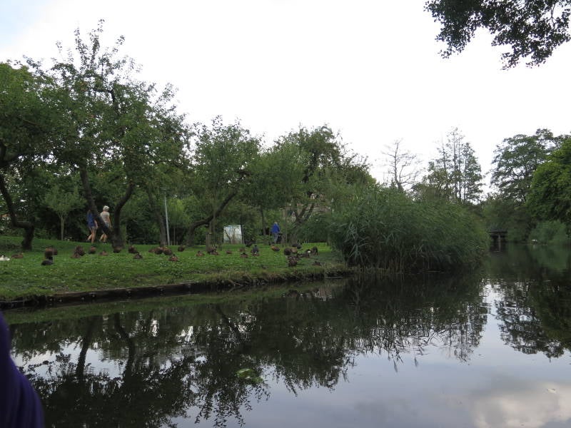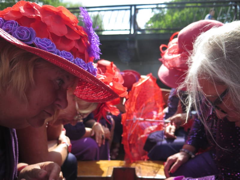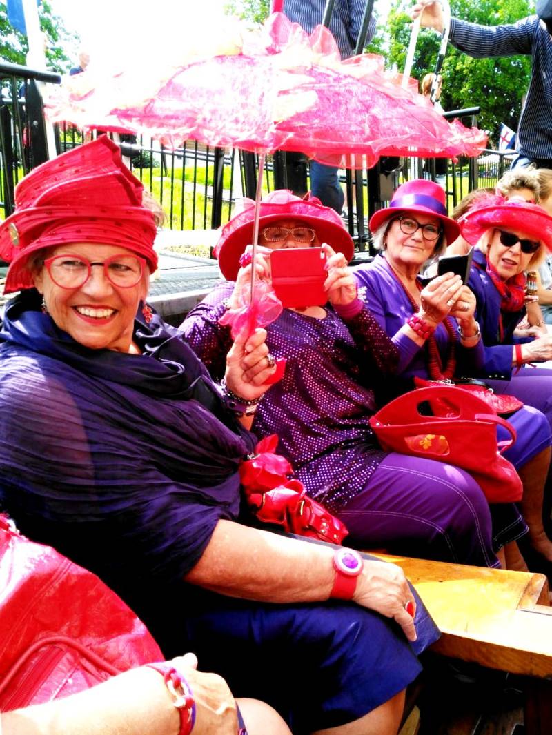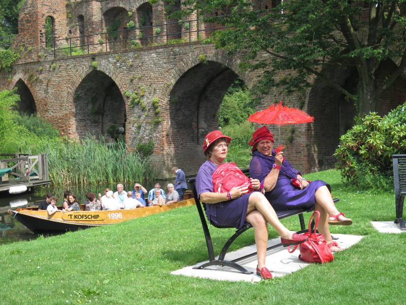 Het was een mooie tocht over de Berkel. Er werd wel enige lenigheid verwacht want we moesten regelmatig bukken om onze mooie hoeden te sparen bij het onderdoor gaan van de bruggetjes.