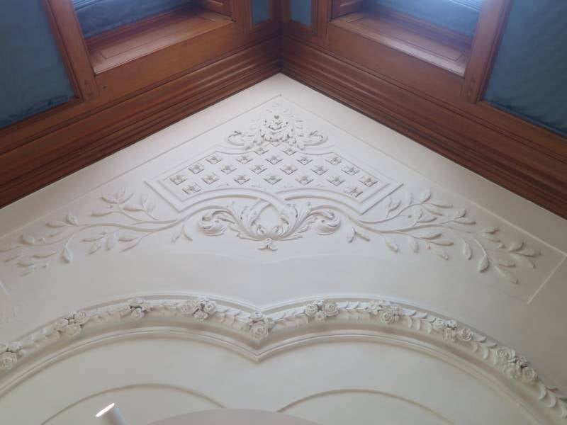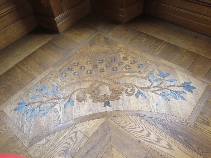 Motieven op het plafond zijn terug te vinden op de vloeren.