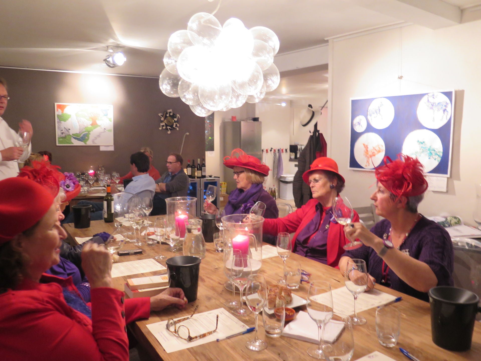 We hebben heerlijke wijnen geproefd. Wij begonnen met een glas prosecco, gevolgd door vijf witte wijnen en vier bijzondere rode. Als afsluiter kregen wij een glas Moscato d'Asti, op de proeflijst werd deze wijn aangeduid als de wereldberoemde lichtzoete parelende zomer- en feestwijn bij uitstek, dus dat kon niet beter! Het was weer een héél leuk en gezellig sjalotje. Bedankt voor het organiseren lieve lady's