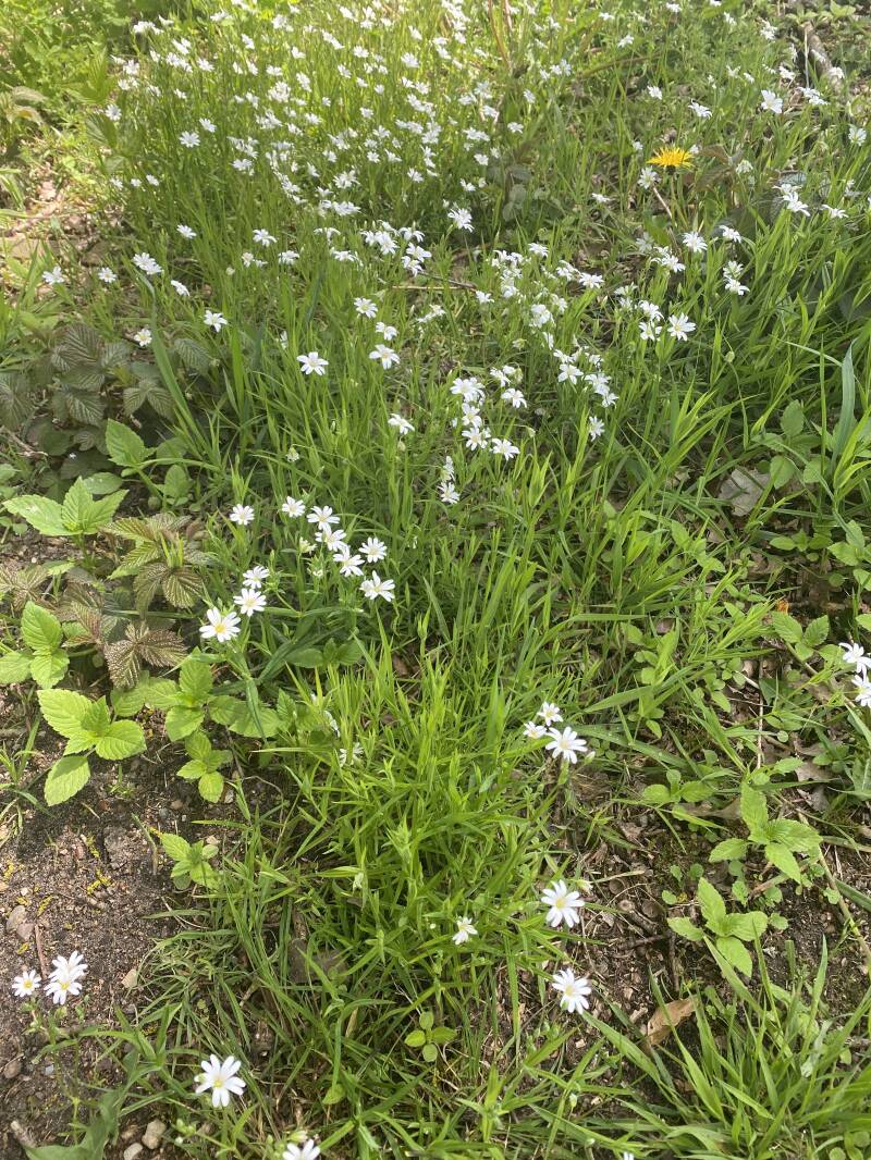 Jong groen en mooie lente bloemen en hier en daar wat rood en paars.