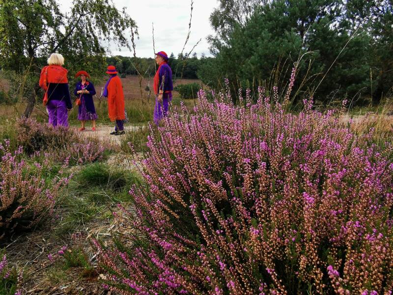De wandeling bracht ons over de paarse heide.