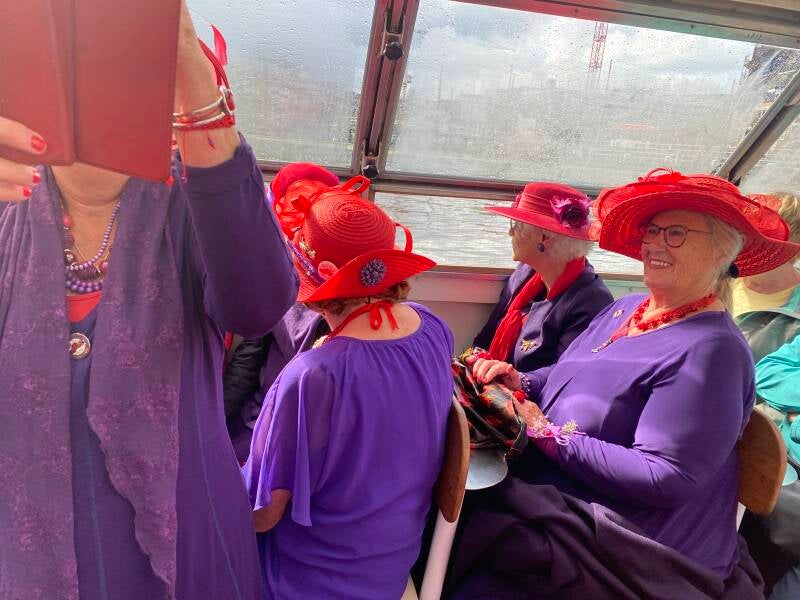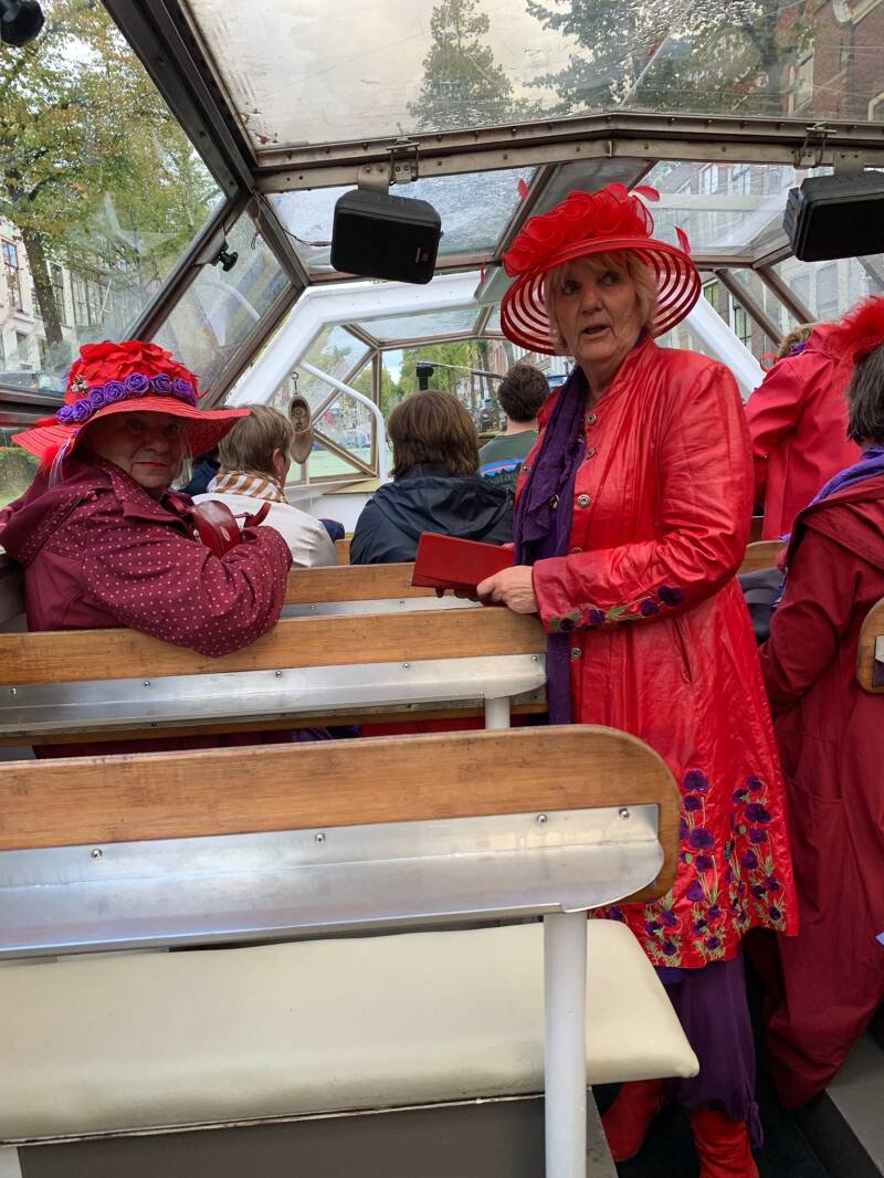 Een boottochtje, weliswaar in de regen maar met een vrolijke boel binnen.