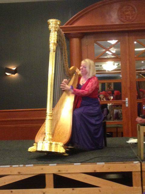 Na de opening hebben we geluisterd naar mevrouw Ederveen, bekend harpiste. Zij praatte haar nummers aan elkaar via anekdotes, en/of spulltjes die zij uit haar wenskistje haalde.